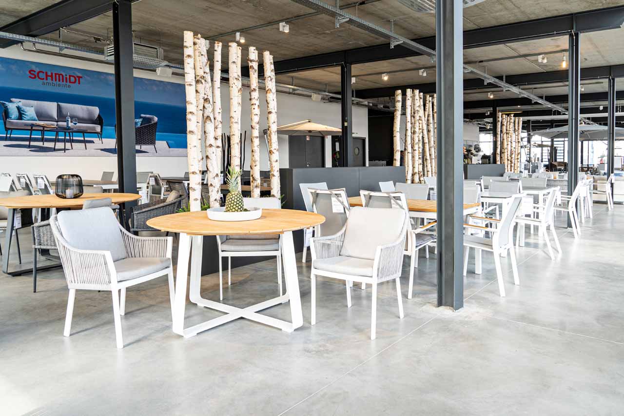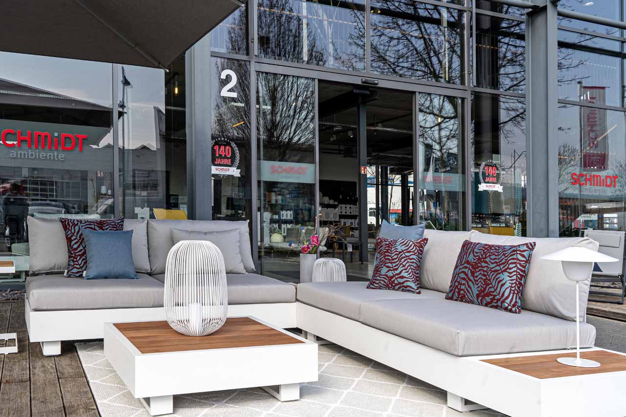 Unsere Filialen sind mehr als nur Verkaufsorte – sie sind Inspirationsquellen für alle, die ihren Außenbereich in eine elegante und komfortable Wohlfühloase verwandeln möchten. Seit 2012 ist unsere großzügige Ausstellung in Hirschberg ein fester Bestandteil der Schmidt Ambiente Familie. Auf einer beeindruckenden Fläche von über 1600 Quadratmetern präsentieren wir eine außergewöhnliche Vielfalt an Gartenmöbeln, Loungemöbeln, dekorativen Elementen, Gartenleuchten und Sonnenschirmen.