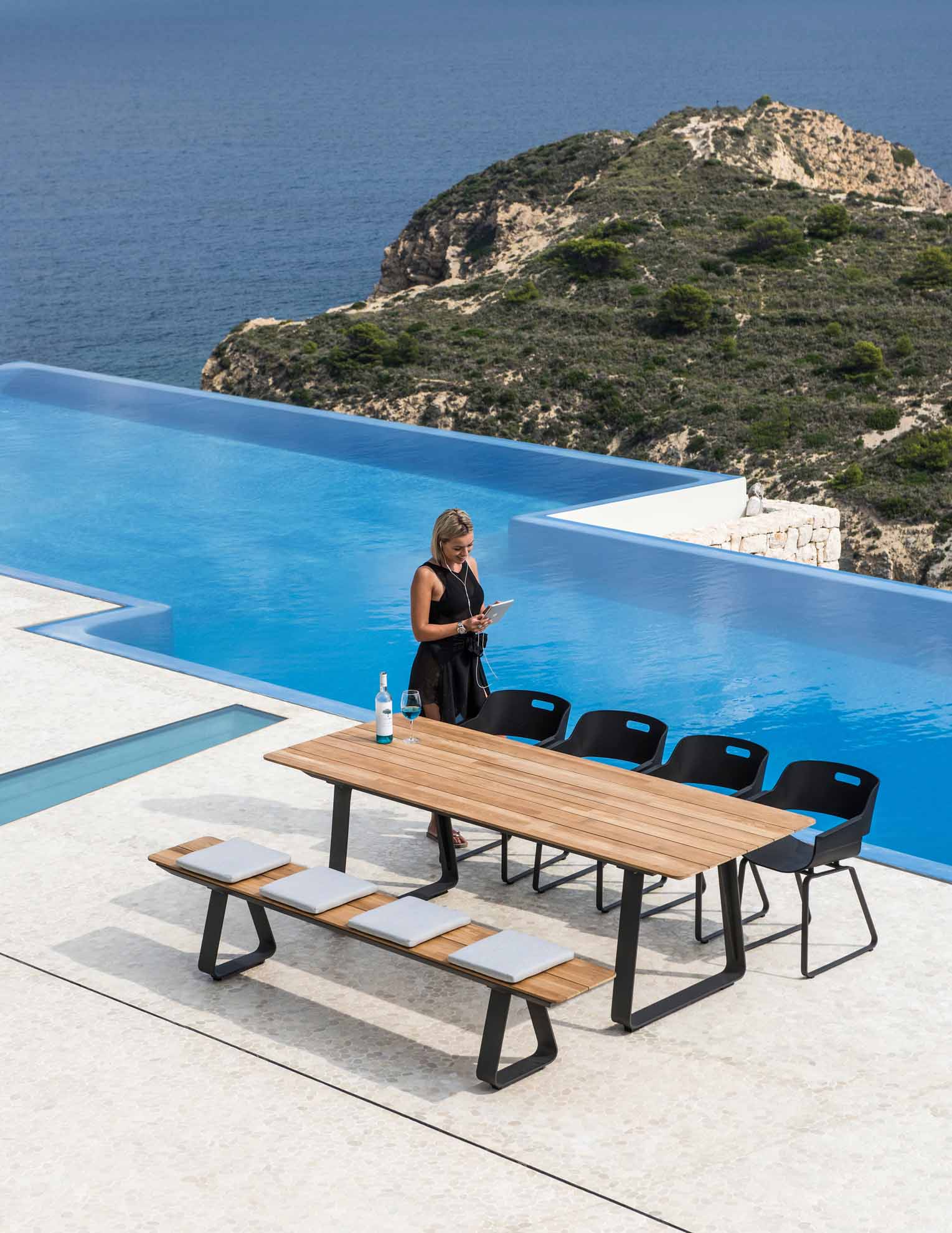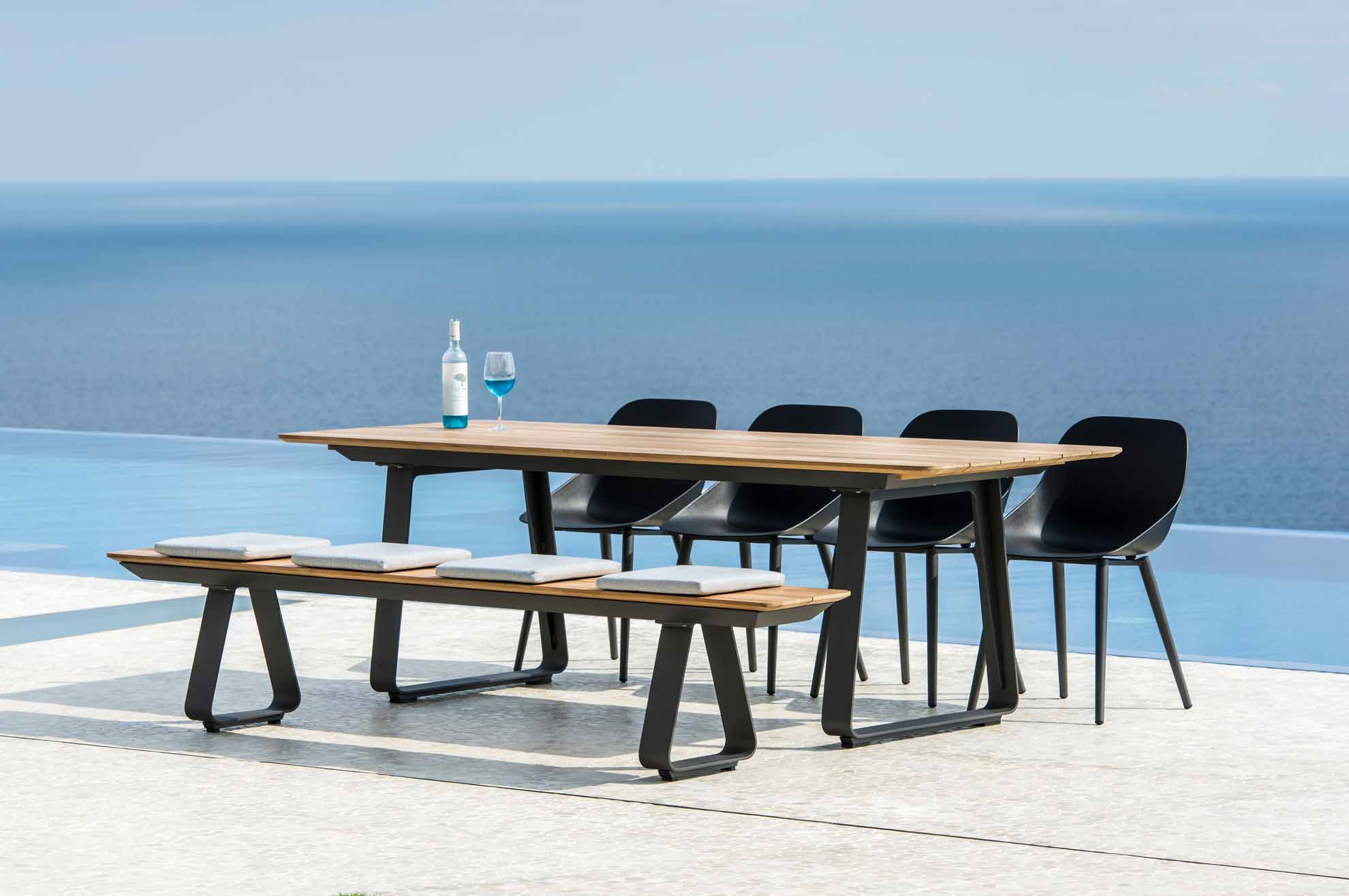 Diese Teakholz Sitzfläche ist passend zu Elko Bankgestellen 240x36 cm Die warme Teakholz-Sitzfläche wirkt gemütlich zum modernen Elko Bankgestell aus Aluminium. Die Bankgestelle sind lieferbar in den Farben weiß und eisengrau.